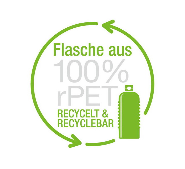 - Fenntartható csomagolás: 100% r-PET palack és 50% r-PE címke - újrahasznosított és újrahasznosítható.